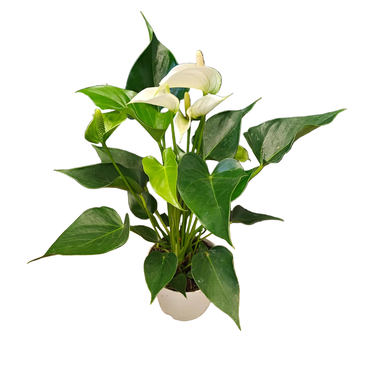 L'Anthurium est une plante qui possède de jolies fleurs blanches. Son feuillage est d'un vert soutenu et luisant. Il est très résistant et il peut fleurir tout au long de l'année si les conditions de culture lui conviennent.